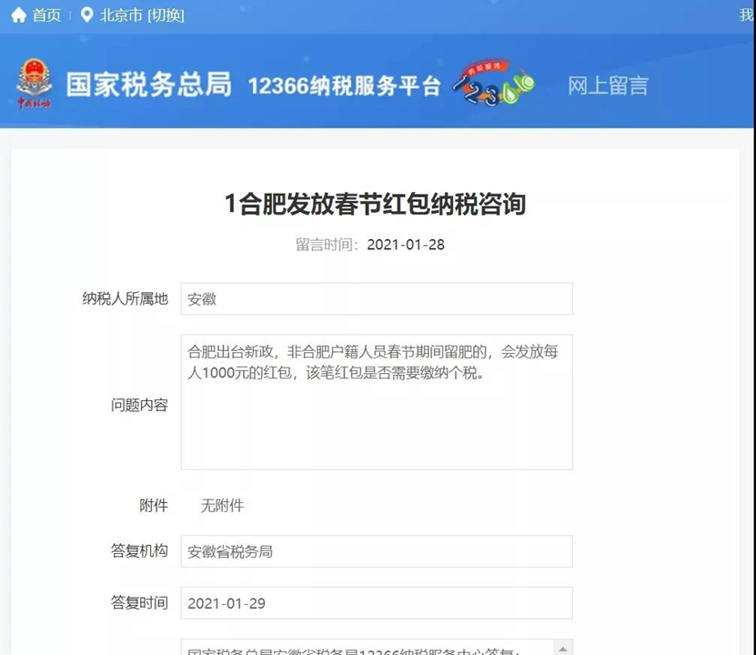 安徽省税务局答复内容:疫情防控期间,政府发放的务工人员关爱补助,在总局政策尚未明确前,暂不征收个人所得税。